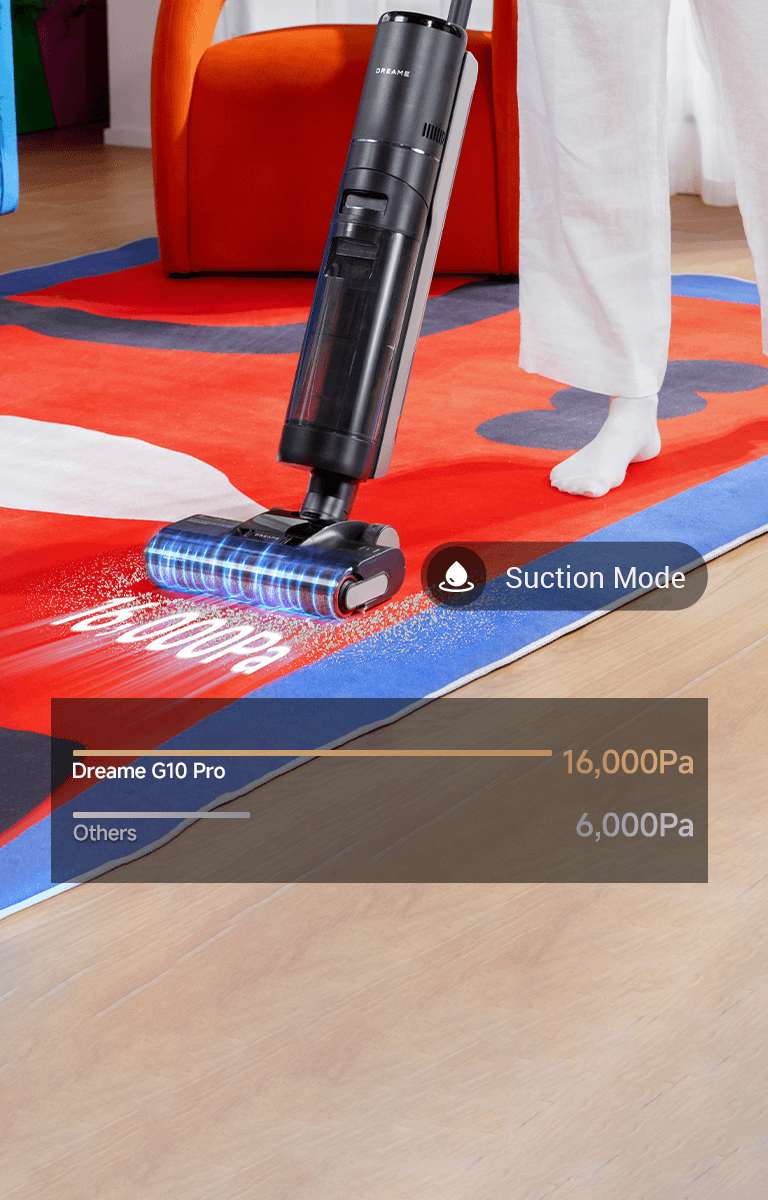 With Suction Mode, it cleans carpets like a pro—dust and trash, gone in a flash!