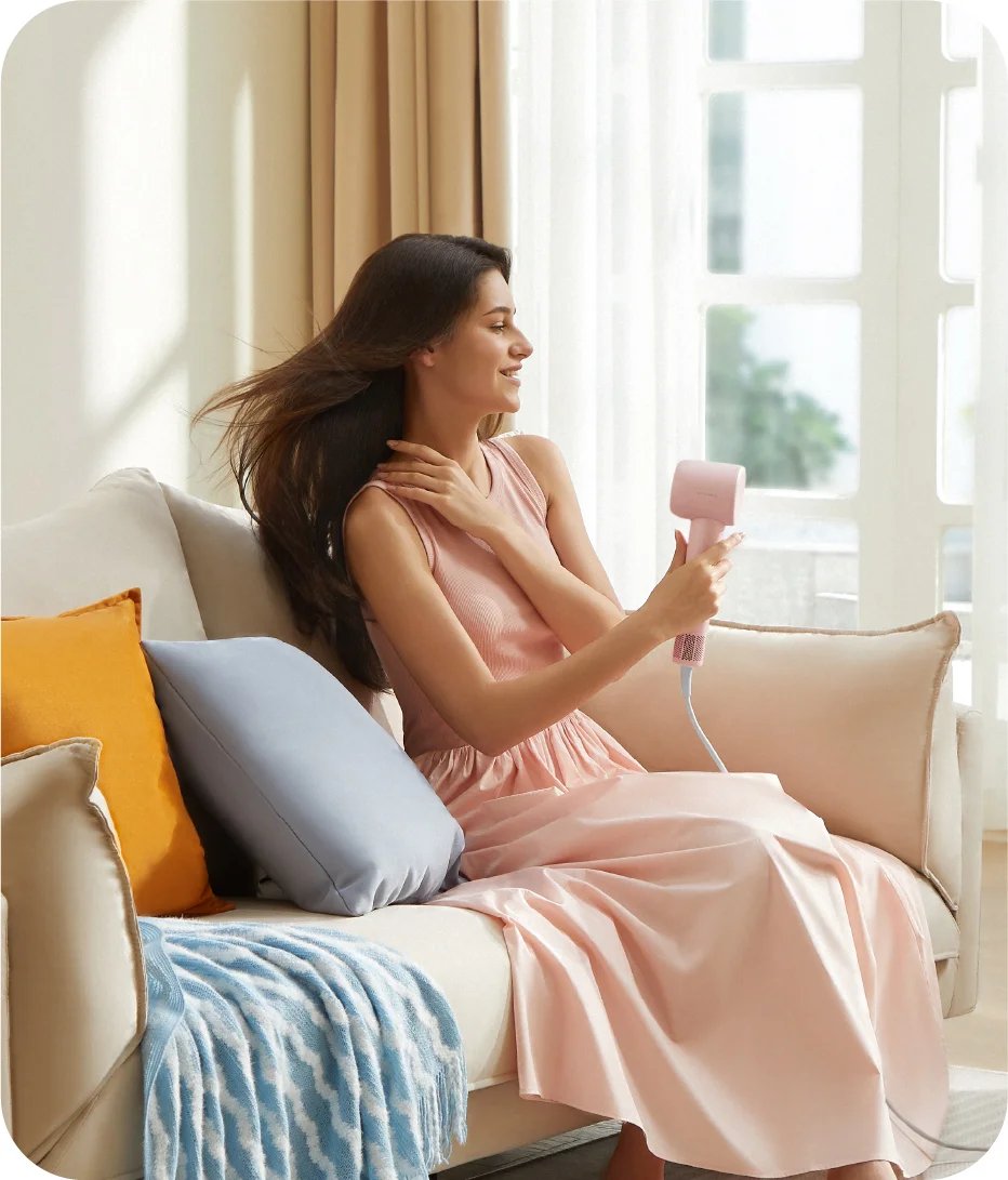 Two airflow speeds and four temperature levels enable accurate styling. Hot Air Mode features precise temperature control with low hair damage while providing better styling options. Natural & Hot Circulation Mode allows you to switch between hot and cold air levels, saving you plenty of time, providing extra convenience, and offering various stylish combos. A colored LED indicator and intuitive button design suit your fashion needs, making your hair-drying experience simple.