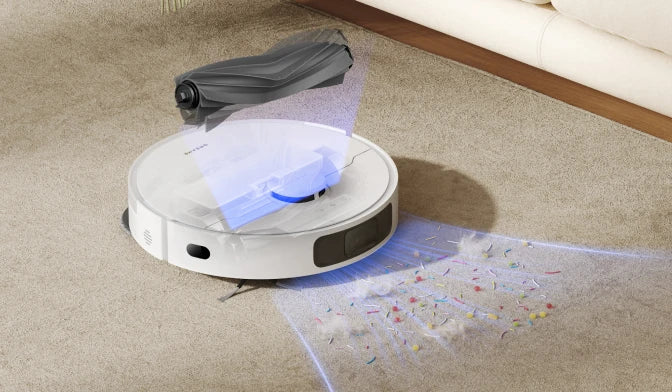 covering up to 1560ft²** on a single charge. When power is low, it auto-docks,