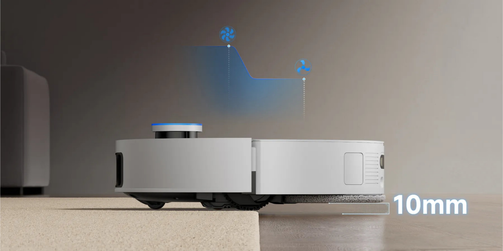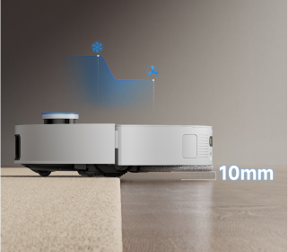 *10.5mm: Based on tests in our in-house lab. The height difference of the robot vacuum is 10.5mm before and after mop lifting.